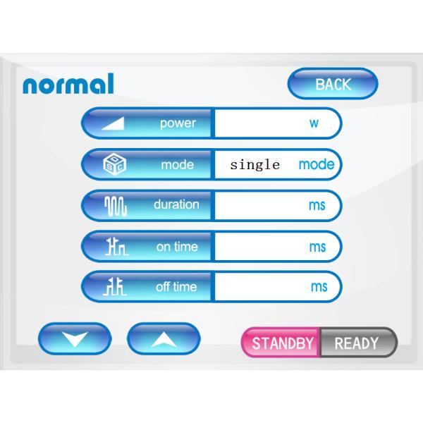 Laser working mode : Continuous Output mode Ultra pulse, single pulse, fractional Fractional working mode